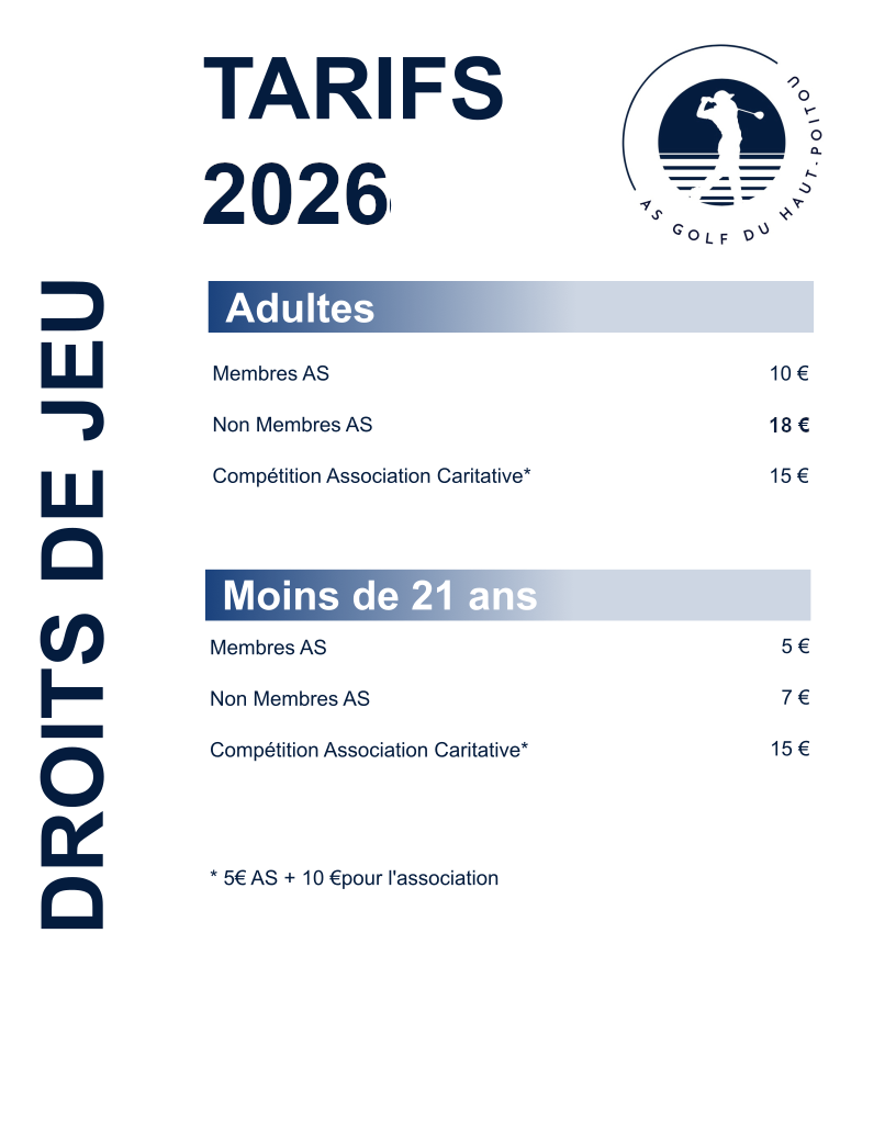 Avec une simple cotisation annuelle de 37.00€, vous bénéficierez de droits d’inscription privilégiés lors des compétitions organisées tout au long de l’année golfique et aussi l'accès à certaines animations / compétitions réservées aux membres ou à des tarifs préférentiels sur ces manifestations.