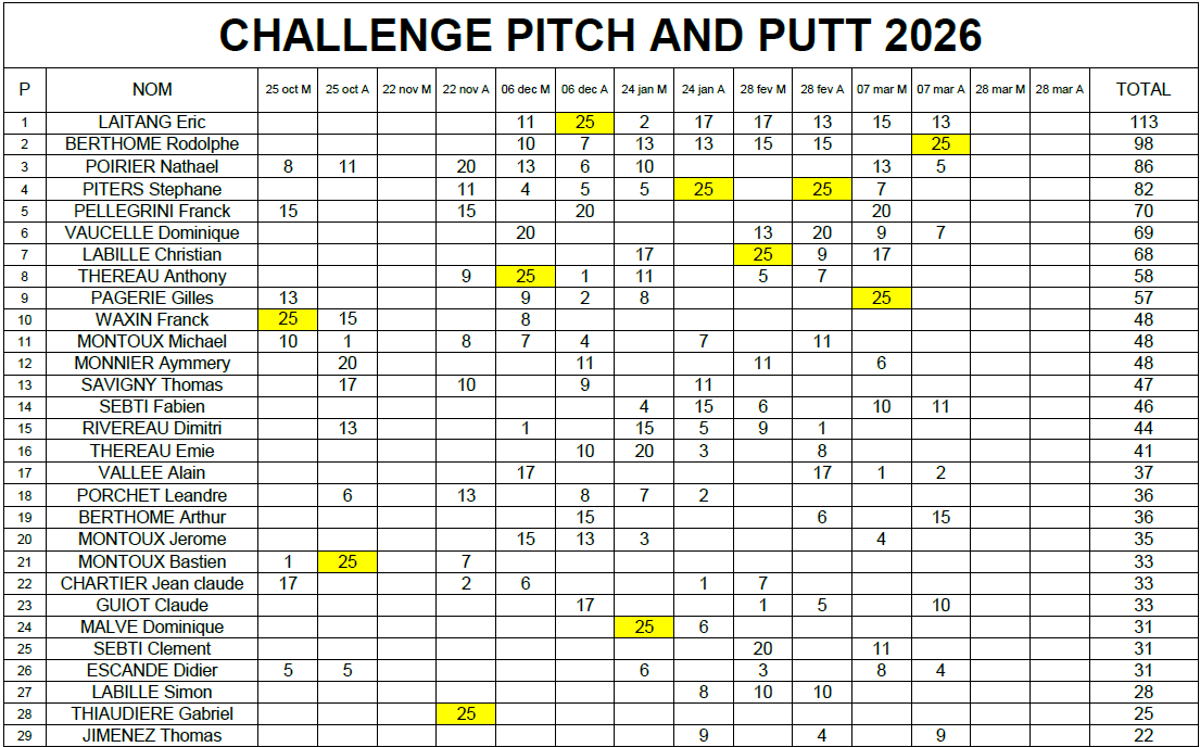 Résultat Pitch & Putt